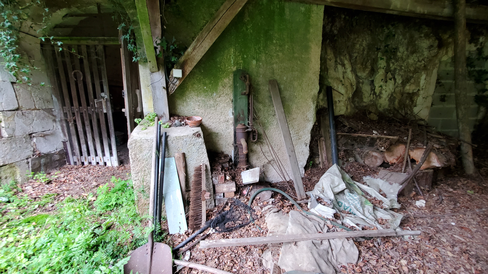 Belle cave en roc de 70m2 environ sur une parcelle cadastrée de 73m2. Eau et électricité. Hangar ouvert.