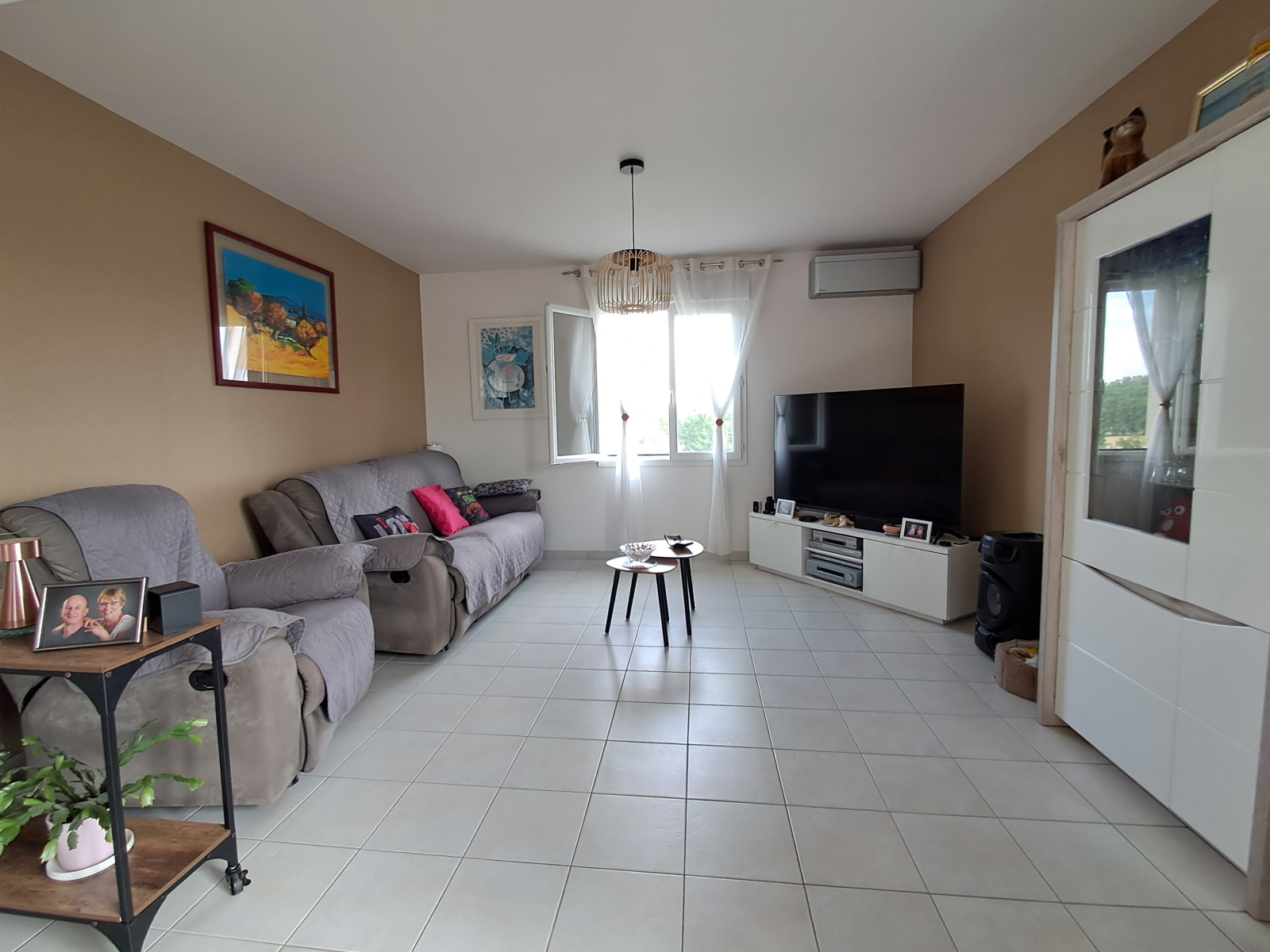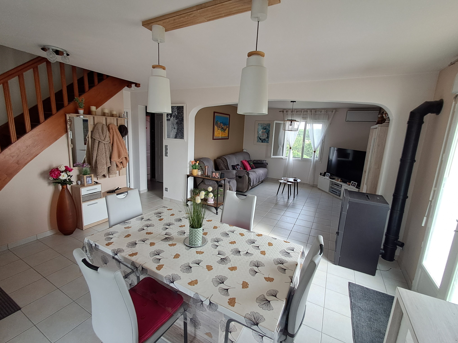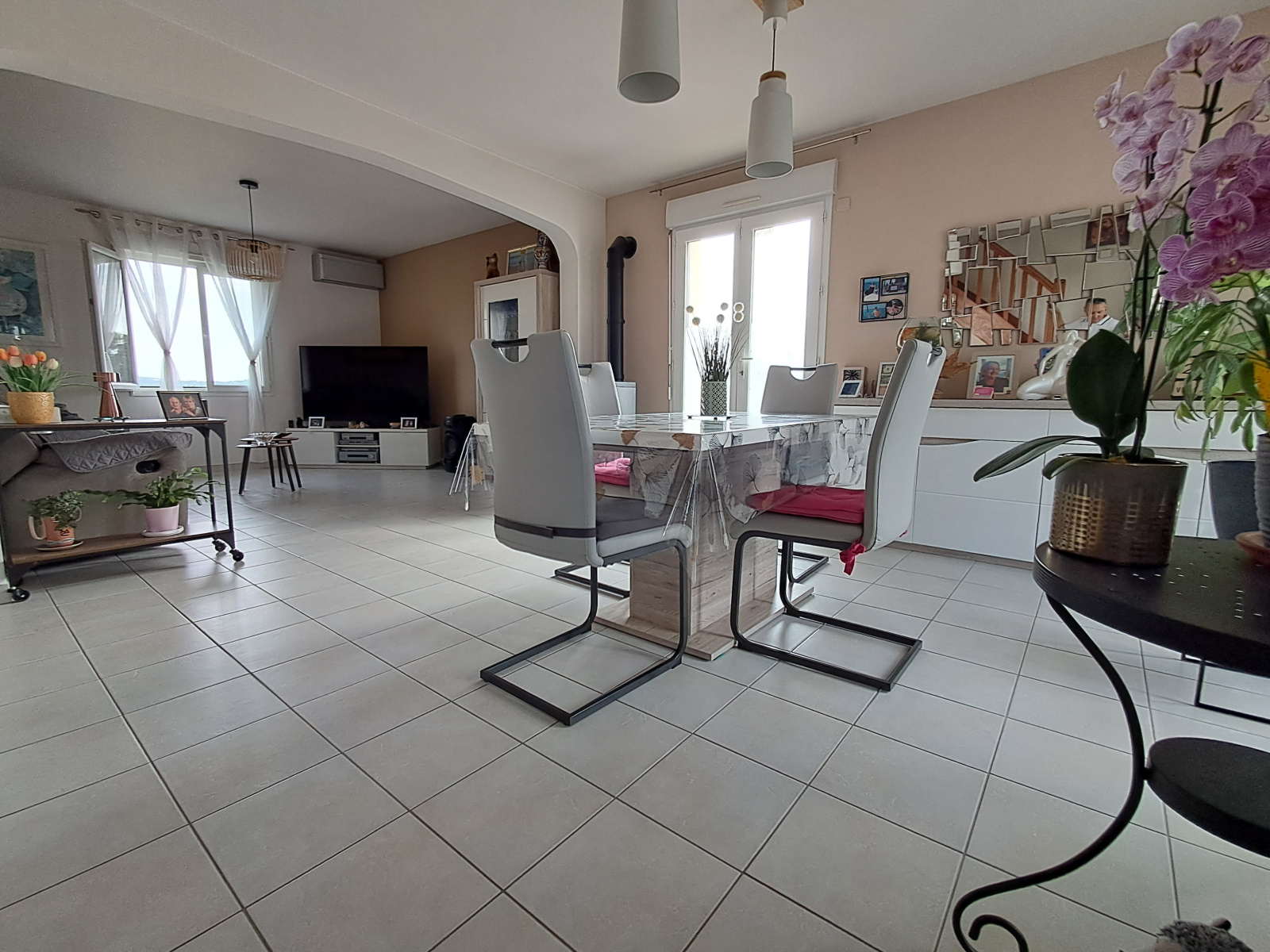 Au rez-de-chaussée, vous découvrirez une pièce de vie spacieuse et traversante, très lumineuse grâce à sa triple exposition, et climatisée pour un confort optimal toute l’année.