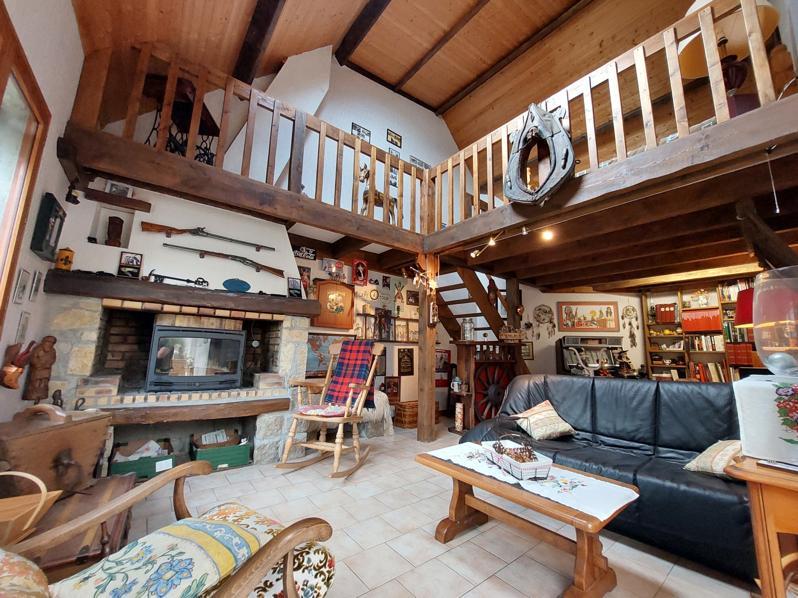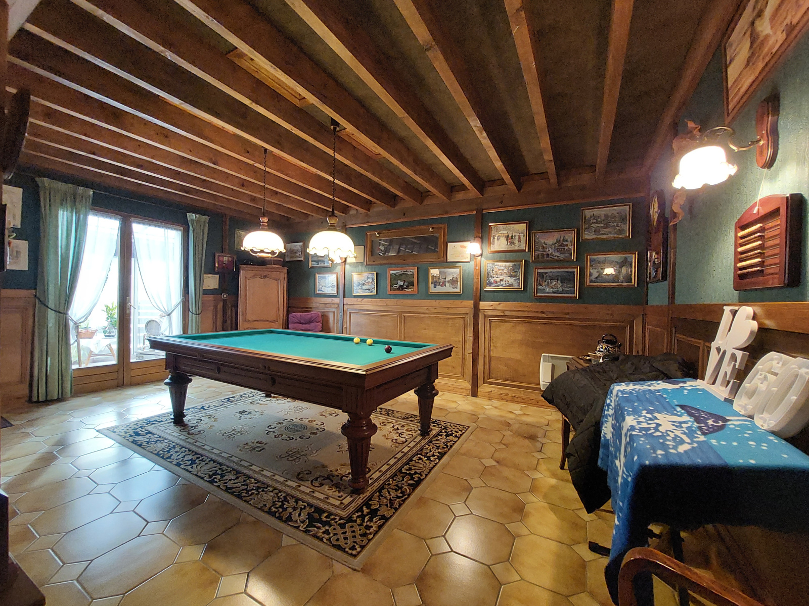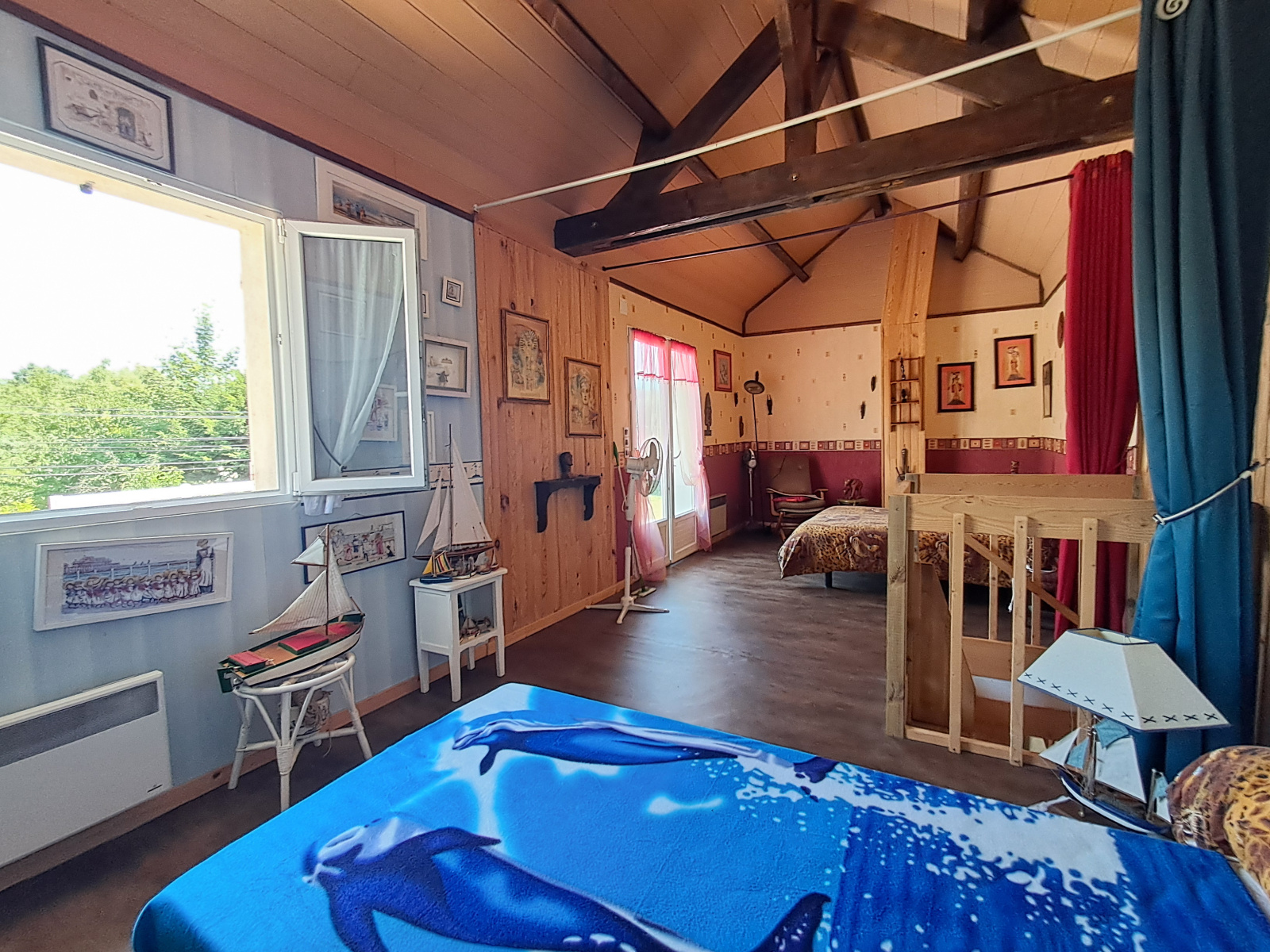 La maison principale de 163 m² offre de beaux volumes avec une cuisine ouverte sur la salle à manger, un salon avec cheminée, une véranda, une salle de jeux aménagée en salle de billlard, une second salon avec mezzanine, des sanitaires (WC et salle d’eau). Un escalier mène à l’étage, où vous trouverez trois chambres, et une mezzanine pouvant servir d’espace nuit, de bureau ou encore de salle de jeux.