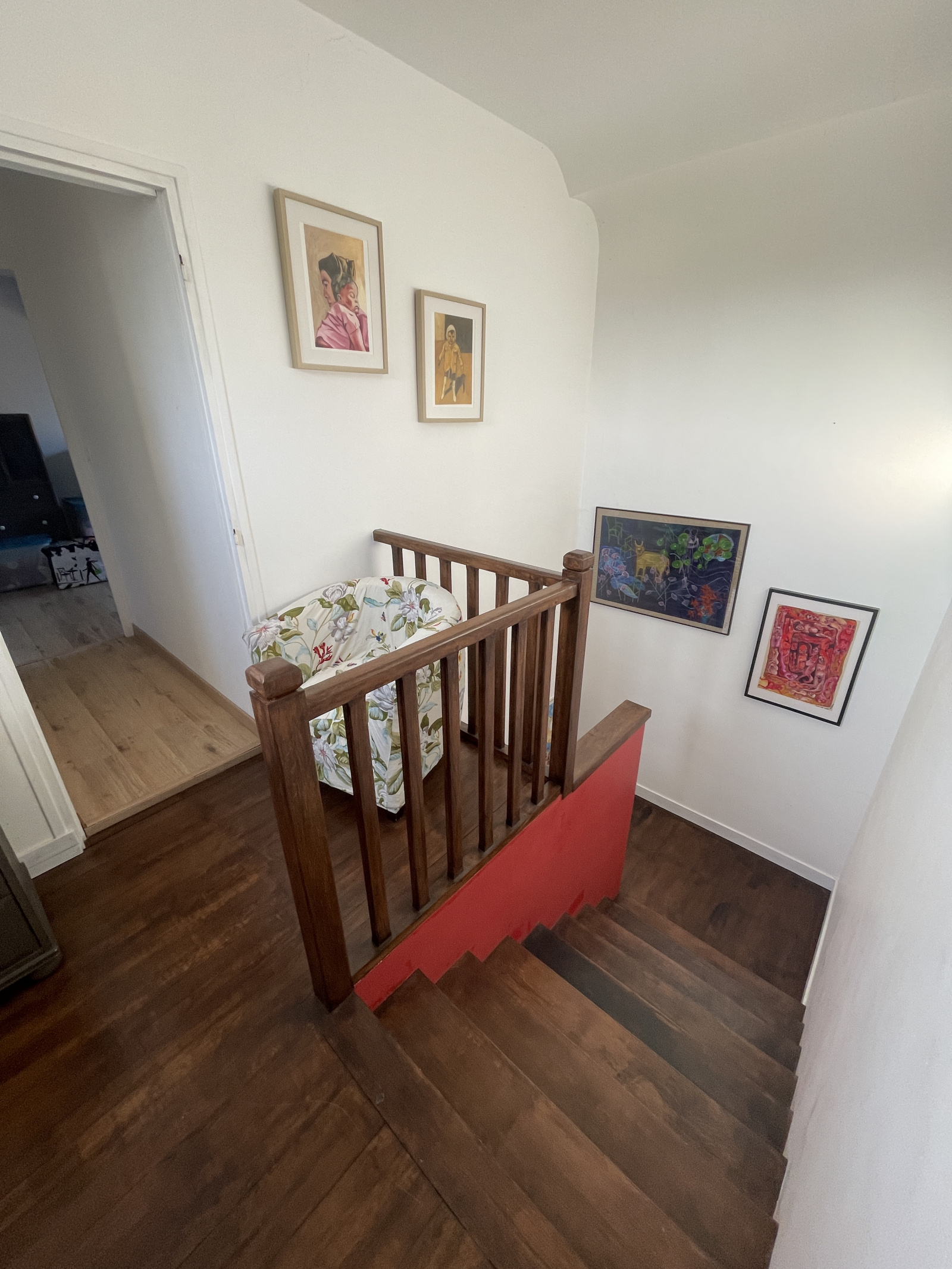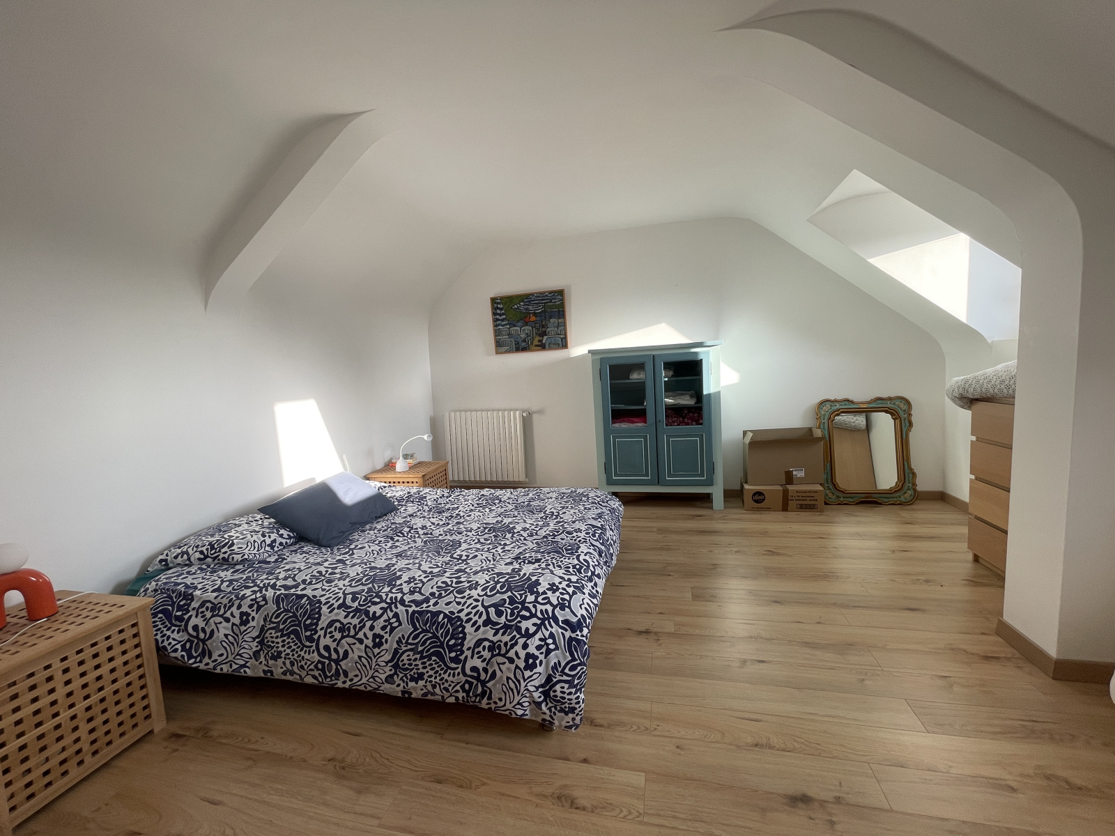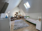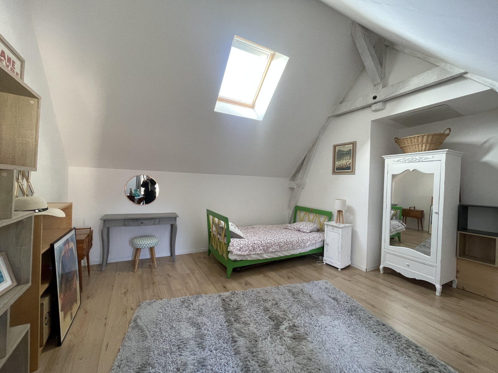 Un bel escalier mène à l’étage principal, où se dévoilent trois chambres aux volumes généreux. Ces chambres offrent un véritable cachet, sublimé par la présence de poutres apparentes, apportant chaleur et caractère à l’ensemble. Lumineuses et confortables, elles s’adaptent facilement à tous vos projets : chambres familiales, bureau ou espace détente.