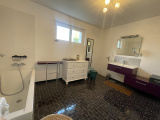Toujours au rez-de-chaussée, vous trouverez une grande salle de bain moderne, disposant de rangement ainsi que d’un coin buanderie, alliant praticité et confort au quotidien.