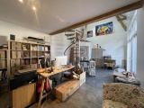 Véritable atout supplémentaire, une ancienne grange entièrement rénovée complète cette propriété. Elle est aujourd’hui aménagée en atelier, mais peut facilement évoluer selon vos besoins : espace professionnel, créatif ou de loisirs. Cette dépendance dispose également d’un toilette indépendant. Un escalier en colimaçon dessert l’étage, où se trouve une chambre supplémentaire, idéale pour recevoir, pour un adolescent ou pour créer un espace indépendant.
