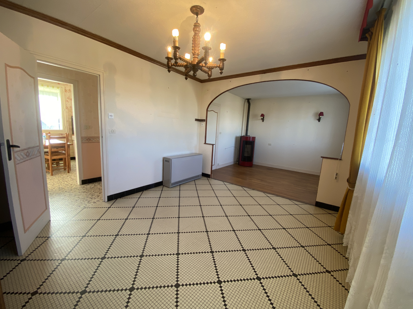 Elle se compose d’une belle pièce de vie lumineuse équipée d’un poêle à granulés, apportant une chaleur douce et économique en hiver. La cuisine, aménagée et entièrement équipée est pratique. et separee de la piece de vie.