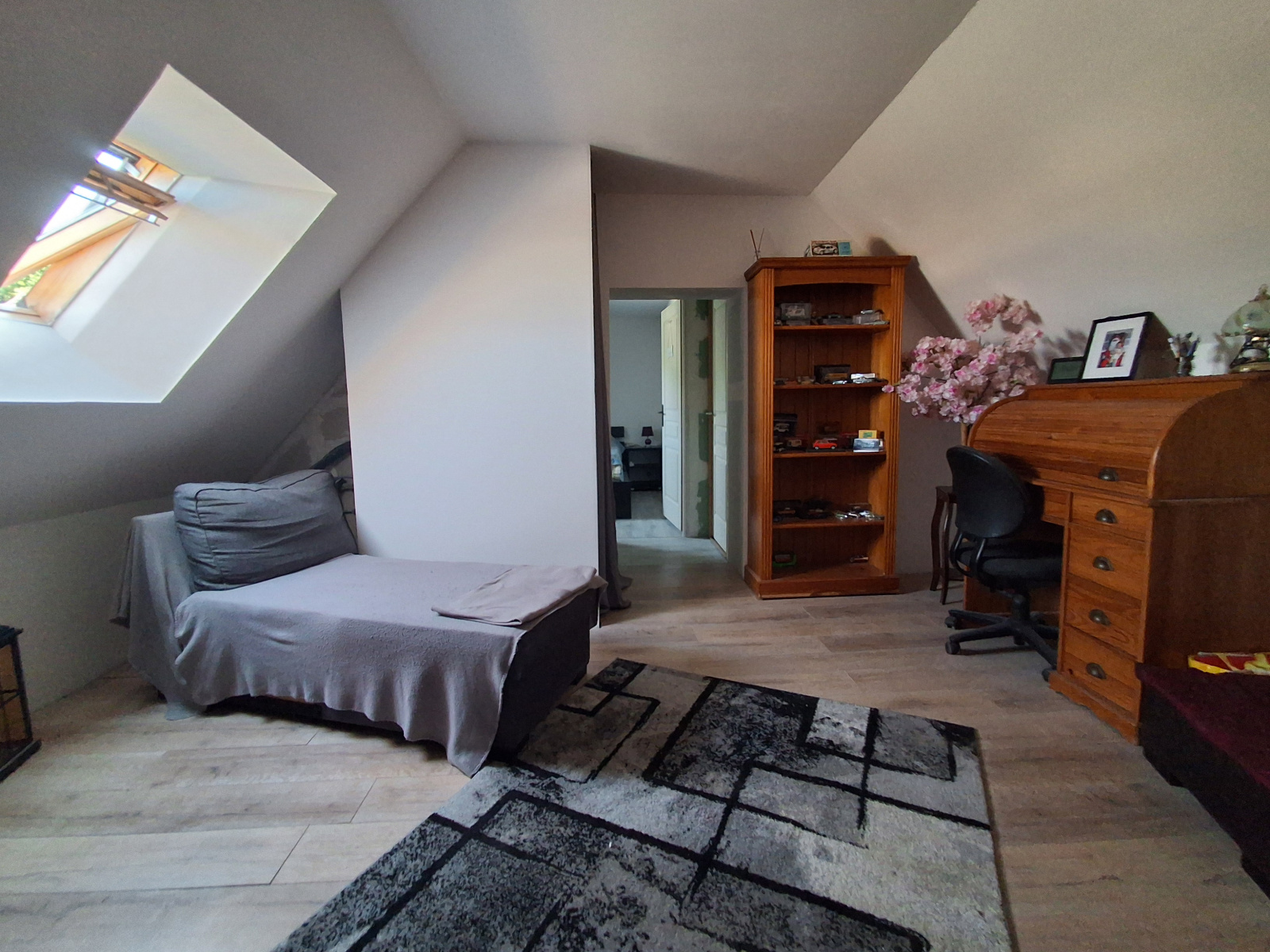 À l’étage, vous trouverez deux chambres supplémentaires, idéales pour accueillir enfants, invités ou pour aménager un bureau. Une pièce palière offre un espace modulable qui peut faire office de coin lecture, de salle de jeux ou salon télé. La salle de bains de l’étage est à terminée, ce qui vous laisse la possibilité de l’aménager à votre goût et selon vos besoins.