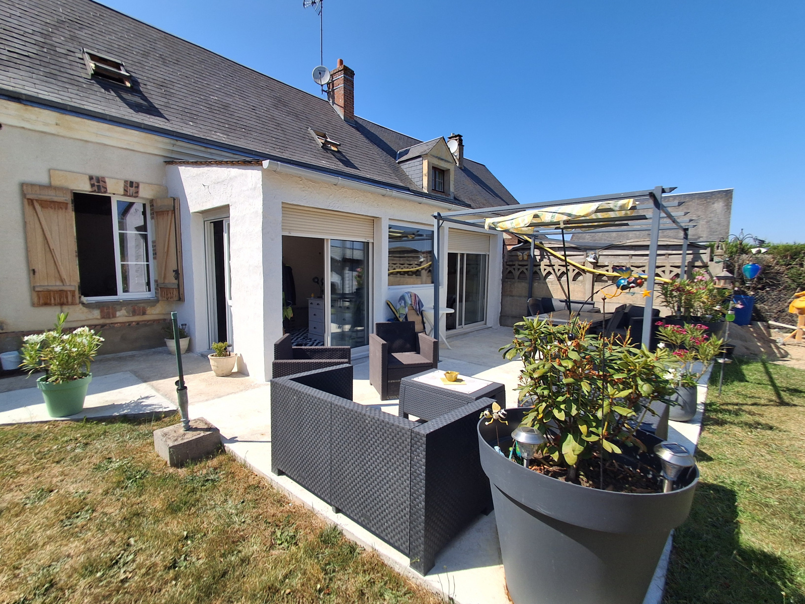 Dès l’entrée, une véranda lumineuse de 16 m² vous accueille, aménagée en agréable coin salon, parfait pour profiter de la lumière naturelle toute l’année. Elle offre un espace de vie supplémentaire très apprécié.