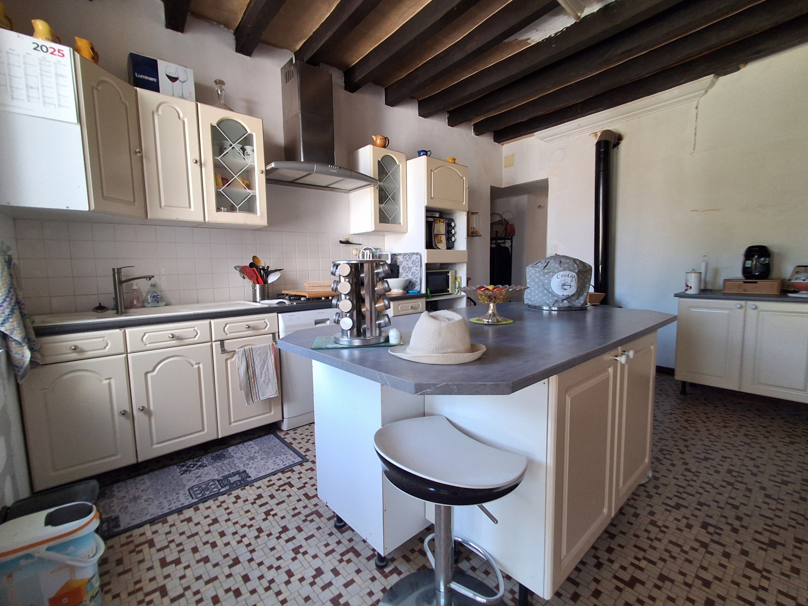 Le rez-de-chaussée propose ensuite un séjour, ainsi qu’une grande cuisine avec un accès direct à une très belle cave attenante, idéale pour les amateurs de vins ou pour stocker provisions et conserves. Une chambre de plain-pied permet de vivre au rez-de-chaussée sans contrainte, et une salle d’eau complète ce niveau pour un confort optimal.