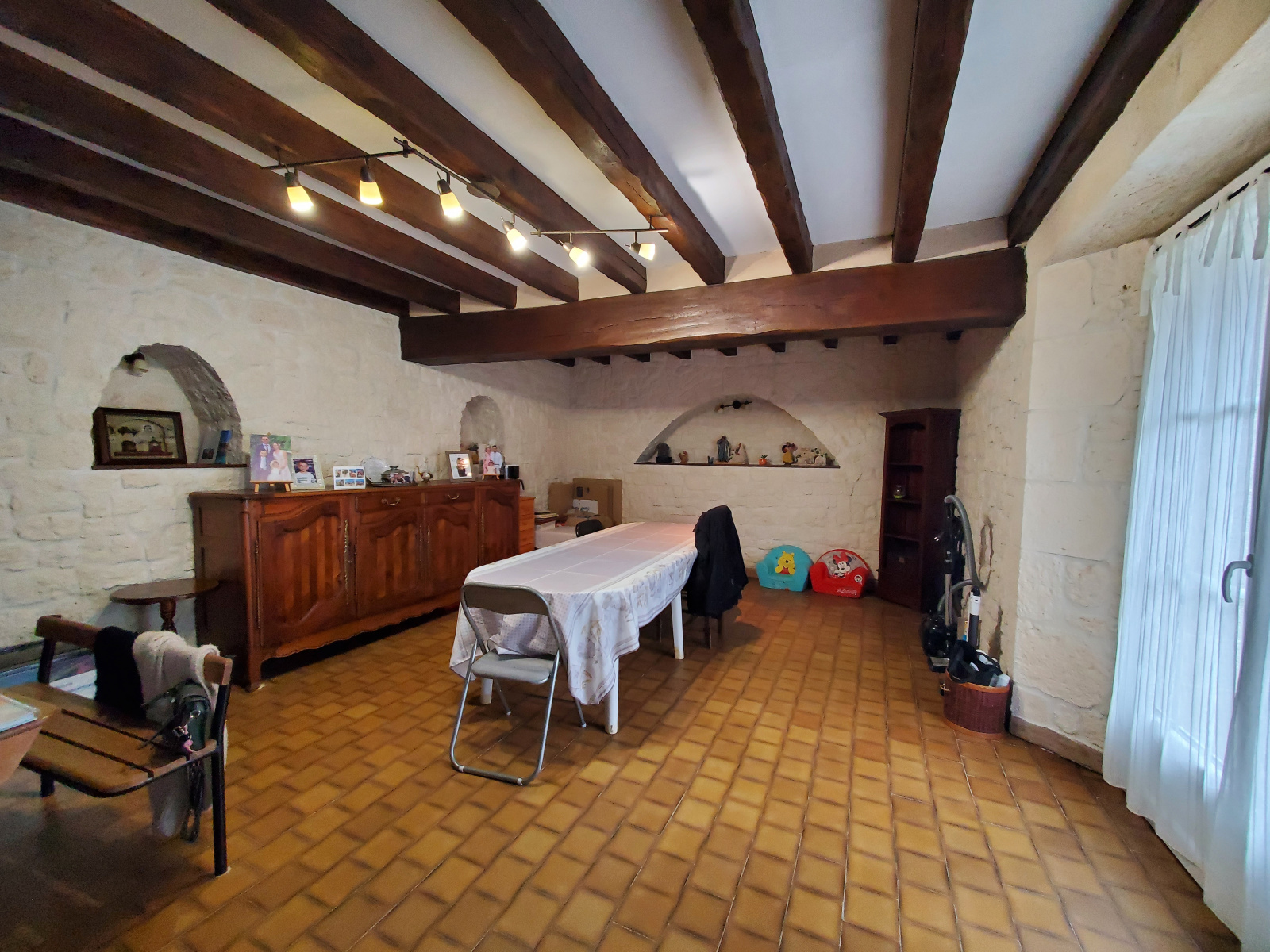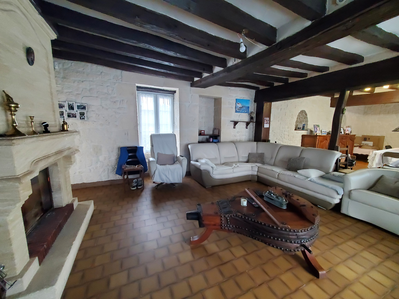 Un vaste séjour de 59 m² avec insert bois, parfait pour des soirées chaleureuses avec accès terrasse.