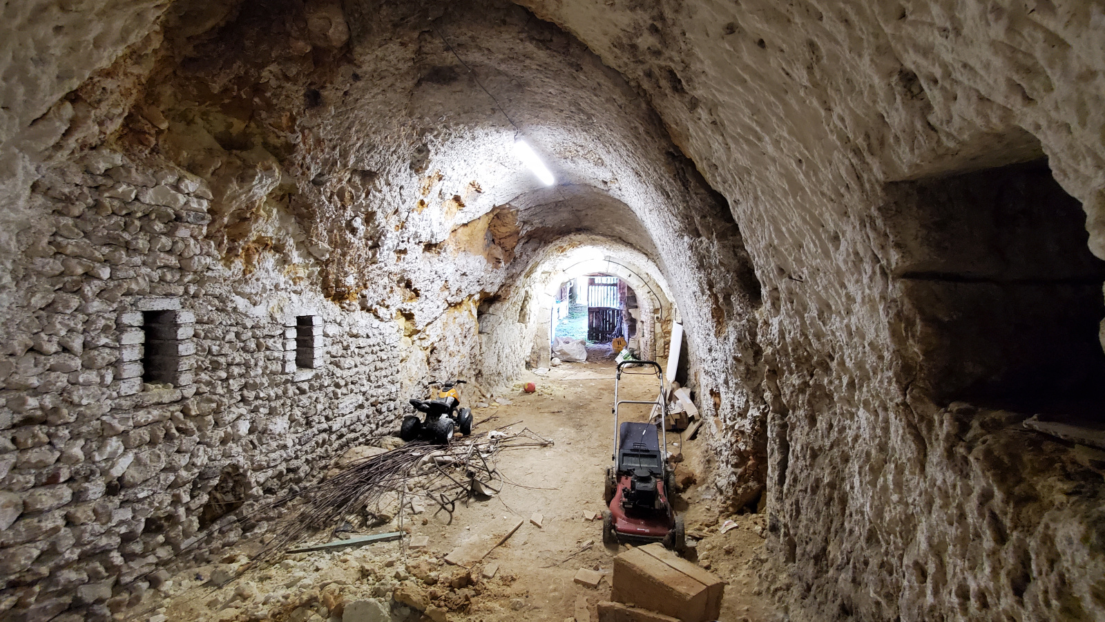 Deux caves, dont une de 60 m² avec four à pain, pour un espace de stockage ou un projet d’aménagement.