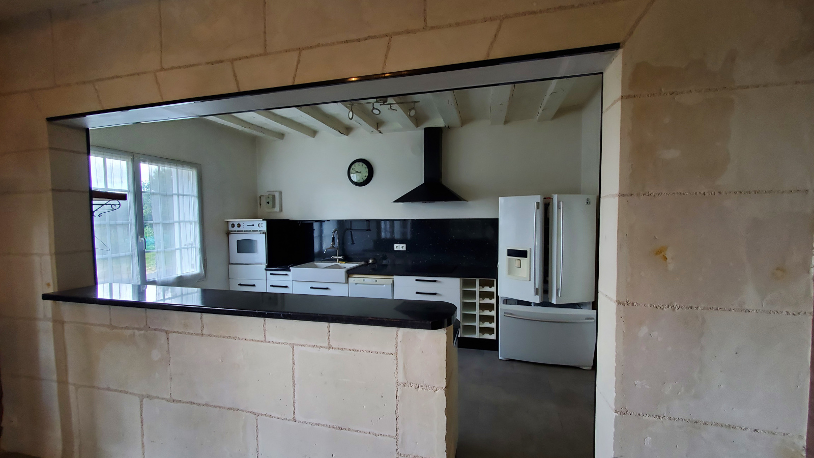 Une cuisine équipée ouverte, fonctionnelle et conviviale.